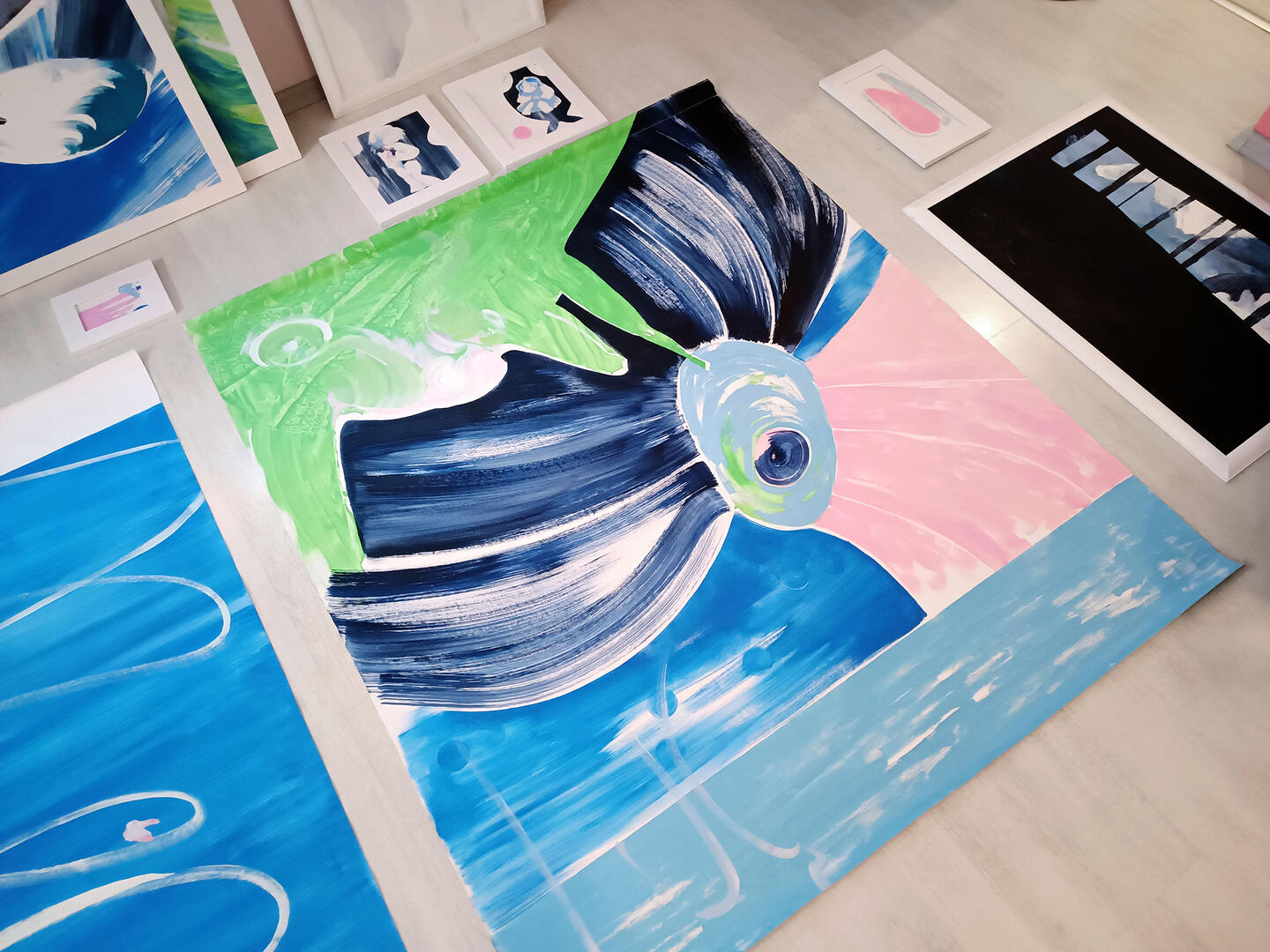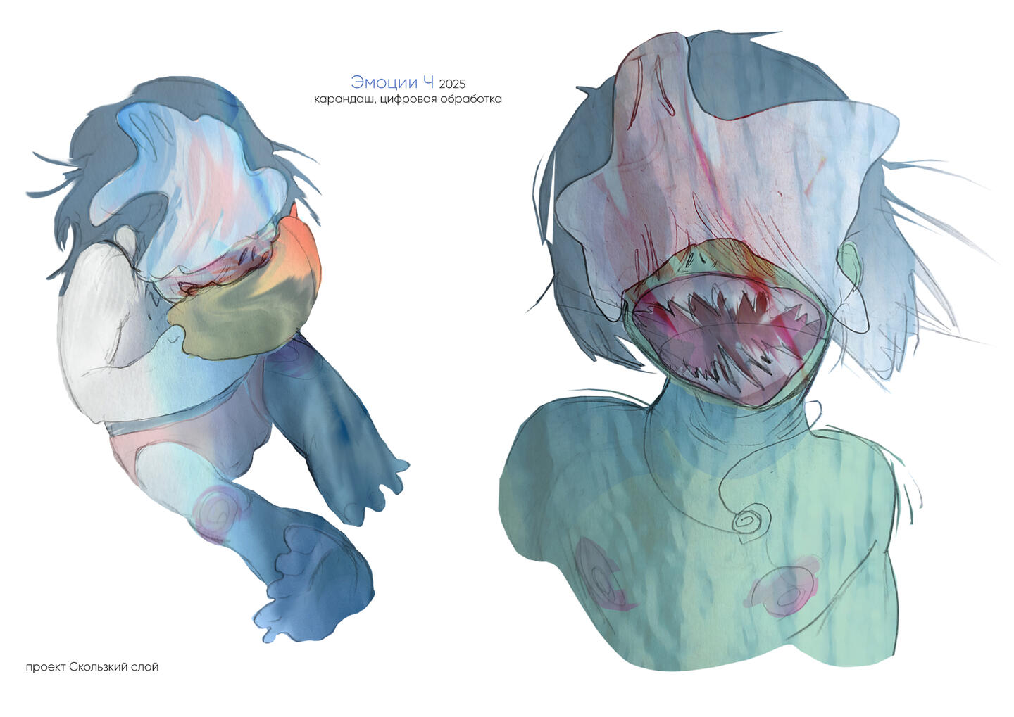 «Скользкий слой» — мультидисциплинарный проект, объединяющий "сказку" и цикл живописных работ. 202514 работ и 9 изображений с текстомРазмер самой маленькой 10х15